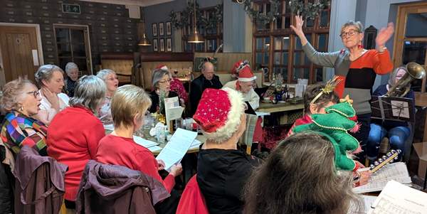 On Thursday 14th December 2023 we returned to The White Horse, 84 Newnham Ave, Bedford, MK41 9PX.Our ever popular 'village carols'; not a performance, just singing and playing our West Gallery Christmas music for our own pleasure, uncostumed except for 21st century silly hats. This event is for ourselves, our friends, and anyone who pops in to join in or just listen. We love our music to be part of a living tradition as it is in many places in the north of England where it never died out.